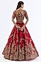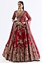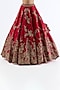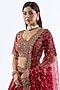 Featuring a red lehenga in raw silk base. It is paired with an embroidered blouse and a tulle dupatta. Accentuate it with statement jewellery and heels for a wedding or engagement ceremony.