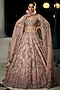 Featuring a rose pink and berry red ombre bridal lehenga in raw silk base with zardosi embroidery. It is paired with a matching blouse and a tulle dupatta.