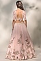 Featuring a rose pink lehenga in organza base with thread and zardosi embroidery. It is paired with a matching silk organza blouse and a chikankari chiffon dupatta.