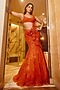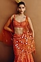 Tangerine Orange Net Sequins Hand Embroidered Draped Skirt Saree Set