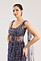 Violet Net Hand Embroidered Draped Skirt Saree Set