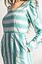 Featuring a green midi dress in upcycled cotton base with printed stripes, pockets, puffed sleeves and a slit.