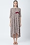 Featuring a multi colored printed flared dress in upcycled rayon base with a high-low hem detail. It is made in a cut and sew panel style technique.