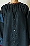 Featuring a navy blue dress in uncycled linen and crepe base with bishop sleeves.
