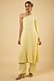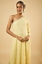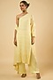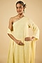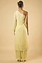 Featuring a butter lemon one-shoulder kurta in georgette base with an attached lining and sequins embroidery. It is paired with satin pants. Accentuate it with pearl or kundan stud earrings and embellished flats for a festive occasions, pre-wedding ceremonies or intimate parties.