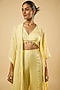 Butter Yellow Satin Sequins Embroidered Cape Set