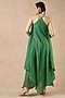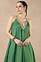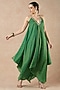 Featuring an emerald green asymmetrical handkerchief dress in gold stripe tissue silk base with metal hand embroidery. Accentuate it with statement jewellery and heels for a cocktail party, resort vacation or a special event.