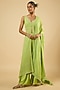 Featuring a jade green kurta in georgette base with an attached lining and sequins embroidery. It is paired with satin sharara pants and a dupatta. Accentuate it with pearl or kundan stud earrings and embellished flats for a festive occasions, pre-wedding ceremonies or intimate parties.