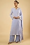 Featuring a lavender kurta in georgette base with an attached lining and sequins embroidery in arch pattern. It is paired with crush georgette pants and a dupatta. Accentuate it with pearl or kundan stud earrings and embellished flats for a festive occasions, pre-wedding ceremonies or intimate parties.