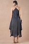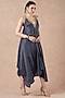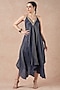 Featuring a midnight blue asymmetrical handkerchief dress in gold stripe tissue silk base with metal hand embroidery. Accentuate it with statement jewellery and heels for a cocktail party, resort vacation or a special event.