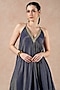 Midnight Blue Gold Stripe Tissue Silk Hand Embroidered Handkerchief Dress