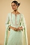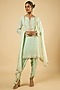 Featuring a mint green kurta in georgette base with an attached lining and sequins embroidery. It is paired with satin dhoti pants and a dupatta. Accentuate it with pearl or kundan stud earrings and embellished flats for a festive occasions, pre-wedding ceremonies or intimate parties.