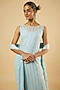 Featuring a powder blue kurta in georgette base with sequins embroidery. It is paired with crush georgette pants, a bustier and a dupatta. Accentuate it with pearl or kundan stud earrings and embellished flats for a festive occasions, pre-wedding ceremonies or intimate parties.