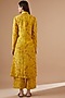 Featuring a mustard jacket in cotton silk base with floral jaal print. It is paired with a matching inner and pants.