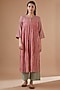 Featuring an old rose kurta in cotton base with embroidery and stripe print. It is paired with contrasting pyjama pants.
