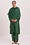 Featuring an olive green shawl in woolen base with zari embroidery. This only contains one piece.