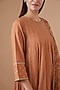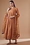 Featuring a peach kalidar kurta in handwoven cotton base with aari embroidery. It is paired with matching pants and an organza dupatta having bird jaal print.