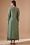 Featuring a sage green kaftan in cotton silk and organza base with golden zari embroidery. It is paired with matching cotton silk pants.