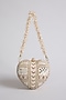 Featuring a gold heart clutch with bugle beads and crystal work. Style it with elegant evening gowns, embellished lehengas or chic cocktail dresses for a refined look, making it ideal for wedding receptions, cocktail parties, festive celebrations or evening wear.