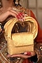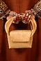 Featuring a gold-silver handcrafted mini bag studded with japanese bugle beads and hand embroidery. It has a pleated handle, long sling chain, microfiber lining and magnetic closure. Style it with elegant evening gowns, embellished lehengas or chic cocktail dresses for a refined look, making it ideal for wedding receptions, cocktail parties, festive celebrations or evening wear.
