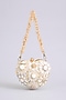 Featuring an ivory heart clutch with japanese bugle bead hand embroidery. It has a microfiber underlining, clasp frame closure and detachable chain strap. This accessory can be worn as a crossbody shoulder bag or carried as a grab handbag, perfect for weddings, cocktail parties, festive celebrations, or elegant evening outings.