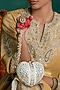 Featuring an ivory heart-shaped clutch in bugle beads and crystal base with mirror embroidery. Perfect for elevating your ethnic ensembles on any occasion, weddings or sangeet ceremonies.