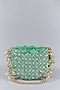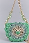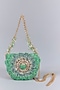 Featuring a jade green mini clutch in luxe microfiber suede base with hand embroidery and leather heat embossment. It has an embellished detachable chain shoulder strap. This versatile accessory is perfect for both casual and sophisticated occasions.