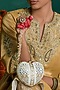 Featuring a pewter silver heart-shaped clutch in bugle beads and crystal base with mirror embroidery. Perfect for elevating your ethnic ensembles on any occasion, weddings or sangeet ceremonies.