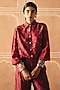 Featuring a berry plum shirt in dupion silk base with embroidered cuff detail. It is paired with printed pleated trousers. Accentuate it with statement earrings and heels for evening wear.
