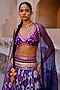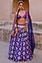 Featuring a blue lehenga in dupion silk base with shibori and ikat digital print, including zari, mirror, zardosi and sequins hand embroidery. It is paired with a hand embroidered blouse and an organza hand embroidered dupatta. Accentuate it with polki jewellery and embellished heels for daytime weddings or carnival ceremony.