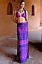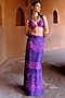 Featuring a blue crop top in dupion silk base with shibori and ikat digital print. It is paired with a printed pencil skirt. Accentuate it with statement earrings and block heels for festive occasions or daytime celebrations.