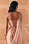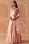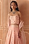 Featuring a blush pink lehenga in dupion silk base with print and embroidered waistband. It is paired with an embroidered corset and an organza embroidered dupatta. Accentuate it with silver jewellery and heels for a festive occasion or sangeet ceremony.