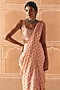 Featuring a blush pink pre-draped saree in dupion silk base with print. It is paired with an embroidered crop top. Accentuate it with polki earrings and heels for a festive occasion or sangeet ceremony.