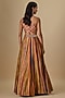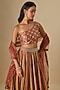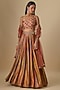 Featuring a brick-colored paneled lehenga in dupion silk base with digital print and hand embroidery. It is paired with an one-shoulder embroidered blouse and a net dupatta. Pair it with zircon or polki jewellery and heels for a traditional look, Perfect for festive occasions or sangeet ceremony.