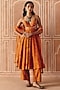 Burnt Orange Dupion Silk Printed Anarkali Set