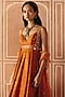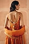 Featuring a burnt orange anarkali in dupion silk base with print. It is paired with printed pants and an organza embroidered dupatta. Accentuate it with statement earrings and heels for a festive occasion.
