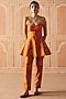 Featuring a burnt orange peplum top in dupion silk base with print. It is paired with printed paneled pants. Accentuate it with statement earrings and heels for a festive occasion.