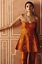 Burnt Orange Dupion Silk Printed Paneled Pant Set