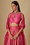 Featuring a fuchsia lehenga in dupion silk base with digital print. It is paired with a mirror hand embroidered blouse and a net embroidered dupatta. Pair it with zircon or polki jewellery and heels for a traditional look, Perfect for festive occasions or sangeet ceremony.
