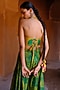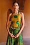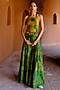Featuring a yellow and green in dupion silk base with ikat digital print, including zari, mirror, sequins and zardosi hand embroidery. It is paired with green printed kalidar pants. Accentuate it with polki earrings and block heels for festive occasions or daytime functions.