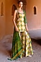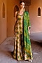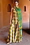 Green & Yellow Dupion Silk Ikat Digital Printed Kalidar Pant Set
