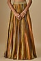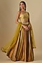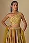 Featuring a lime green paneled lehenga in dupion silk base with digital print and hand embroidery. It is paired with an one-shoulder embroidered blouse and a net dupatta. Pair it with zircon or polki jewellery and heels for a traditional look, Perfect for festive occasions or sangeet ceremony.