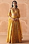 Marigold Yellow Dupion Silk Printed Gathered Lehenga Set