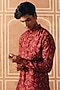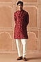 Featuring a berry plum kurta in dupion silk base with print. It is paired with cotton silk pants. Accentuate it with pair of kolhapuris and antique gold brooch for festive occasions or sangeet ceremony.