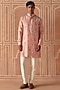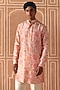 Featuring a blush pink kurta in dupion silk base with print. It is paired with cotton silk pants. Accentuate it with pair of kolhapuris and antique gold brooch for festive occasions or pooja ceremony.