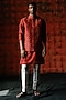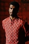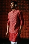 Featuring a brick red bundi jacket in dupion silk base with digital print. It is paired with a chanderi silk kurta and cotton silk pants. Style it with mojaris for a festive occasion, wedding, sangeet or engagement ceremony, exuding charm and elegance.