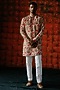 Featuring an ivory kurta in dupion silk base with digital print. It is paired with cotton silk pants. Style it with kolhapuri sandals for a festive occasion, family gathering, haldi or pooja ceremony, exuding charm and elegance.