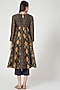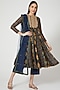 Featuring a midnight blue anarkali in chanderi silk base with print and embroidery. It is paired with matching pants and a dupatta.