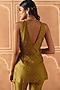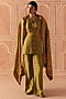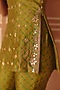 Featuring a parrot green tunic in dupion silk base with print and hand embroidery. It is paired with bell-bottom pants and a printed dupatta. Accentuate it with statement earrings and heels for a festive occasion.