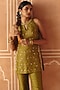 Parrot Green Dupion Silk Printed Bell-Bottom Pant Set